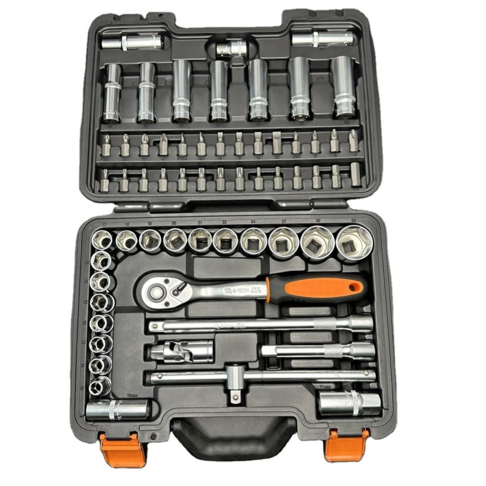 Professional 62-Piece CR-V Steel 1/2 Inch Drive Quick Release Ratchet Wrench Impact Socket Set for Home and Auto Repair