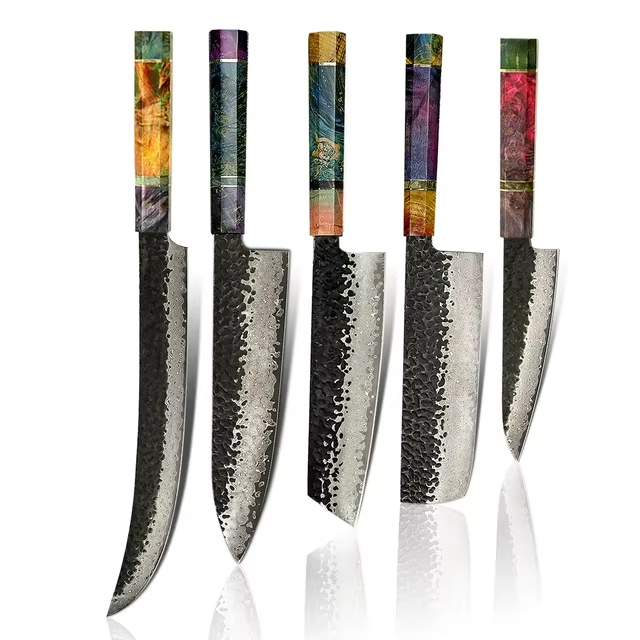 Professional 7-Piece Damascus Steel Handmade Chef Kitchen Knives Plastic Handles Drop Point Blade OEM Customizable-MS Enterprise