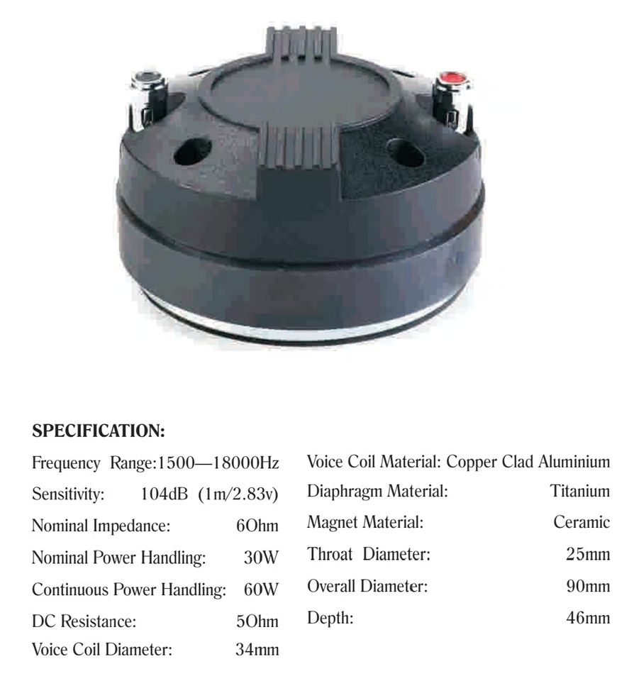 V-NICE OEM ODM T34-1 Tweeter 34mm Voice Coil 6 90W for Full Range Speakers Surround Sound Systems & DVD/TV
