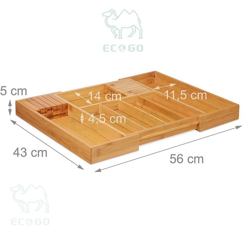 Professional Bamboo Kitchen Cutlery Organizer Expandable with Knife Holder 7 Compartments Utensil Holder