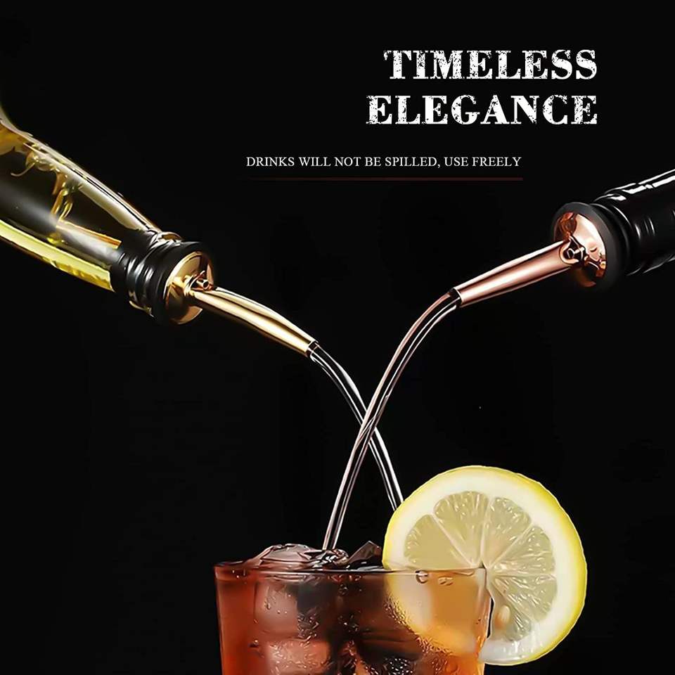 Professional Bar Stainless Steel Gold Olive Oil Vinegar Wine Bottle Liquor Cork Spout Pourer With Automatic Weighted Dust Cover