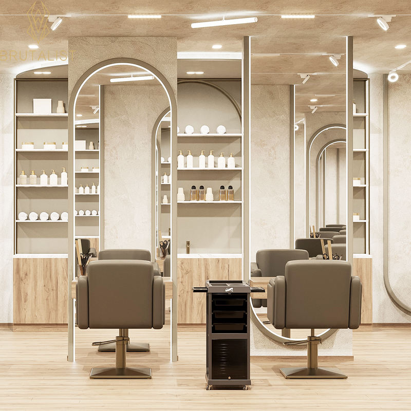 Custom 3D Design Salon Furniture for Professional Barber Shops Beaury Hair Station with LED Lighting