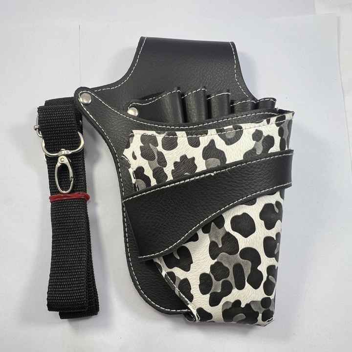 Professional Barber Tool Holster Scissor Bag with Adjustable Belt Made in PU Leather Hairdressing Scissor & Clippers Holder.