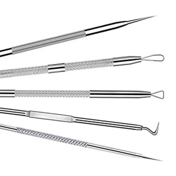 Professional Beauty Pimple Extractor 5pcs Silver Blackhead White Head Acne Blemish Remover Kit with Transparent Case