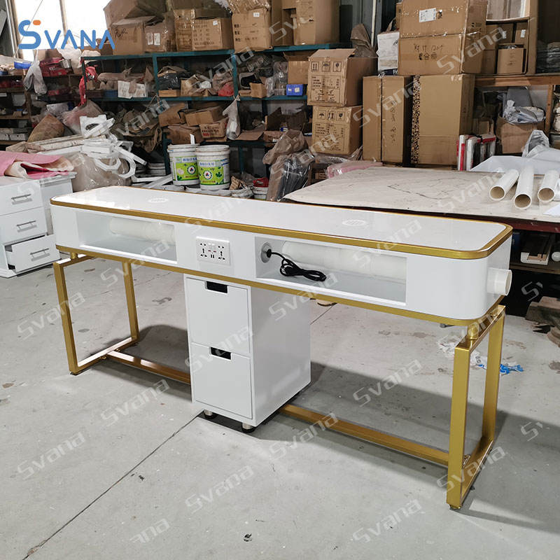 Professional Beauty Salon Luxury Double Wood Manicure Nail Table With Vent