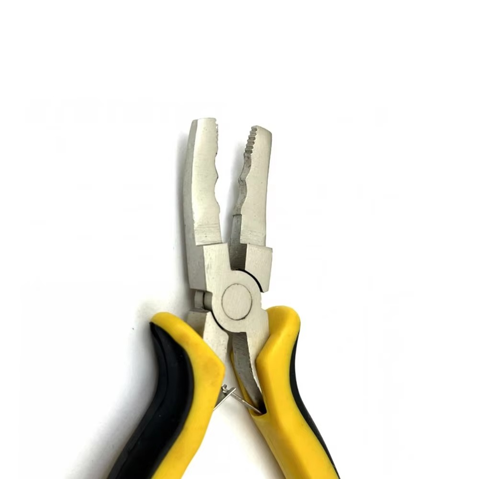 Professional Beauty Salon Stainless Steel Hair Extension Plier Micro Ring Bead Remover With Two Holds Yellow Grip Private Label