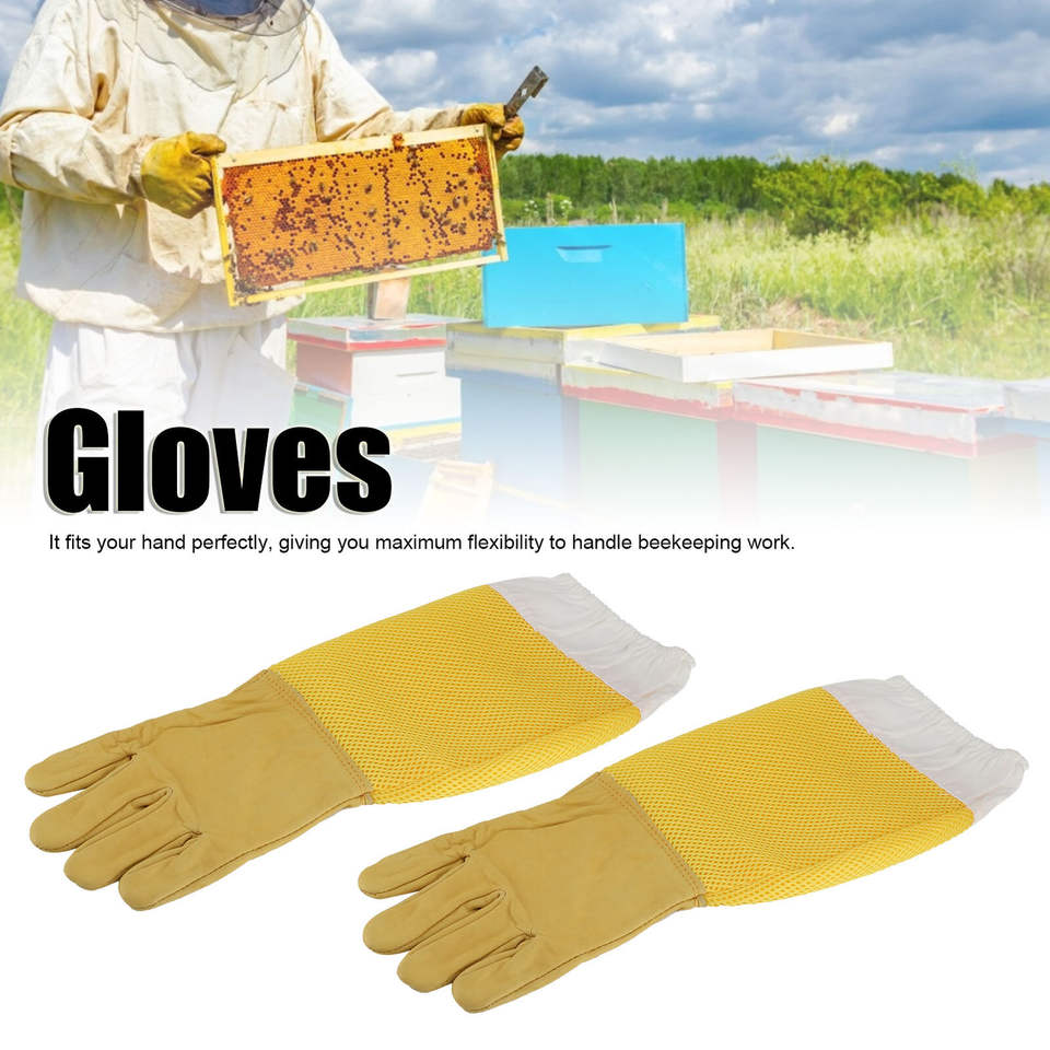 Professional Beekeeping Gloves Branded Sheepskin with Long Sleeves Breathable Fireproof Anti-Cut Anti-Slip for Beekeepers