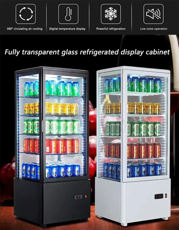 Professional Best Quality Hot Selling Stainless Steel 4 Side Glass 5 Layer Panoramic Refrigerated Cake Display Showcase Crystal