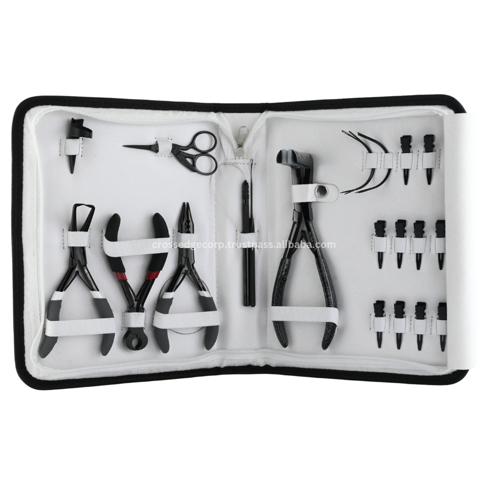 Professional Black Hair Extension Tools kit Micro Beads Tape in Remover Plier crimper hair tool keratin remover braiding finger