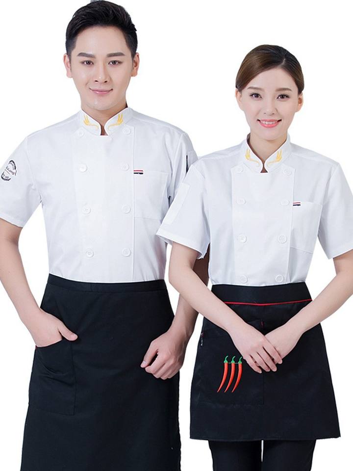 Professional Chef Jackets Woven Unisex Short Sleeve Workwear Oil-Resistant Anti-Pilling Polyester/Cotton Uniform Restaurant