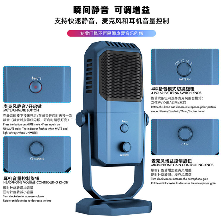 Handheld Microphone, USB Microphone, Desktop, Shock Mount, Wired Microphonestyle