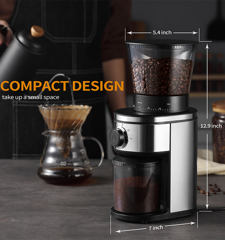 Professional Conical Burr Coffee Turkish Electric Bean Machine Coffee Grinder Stainless Steel
