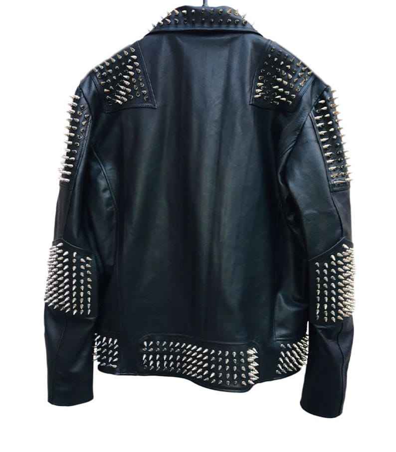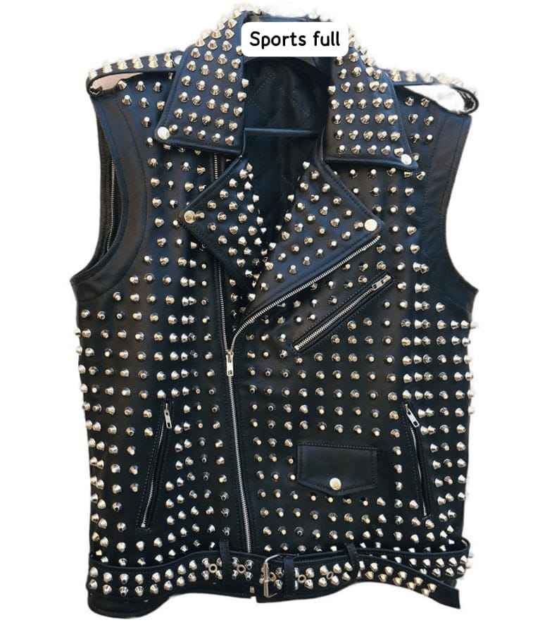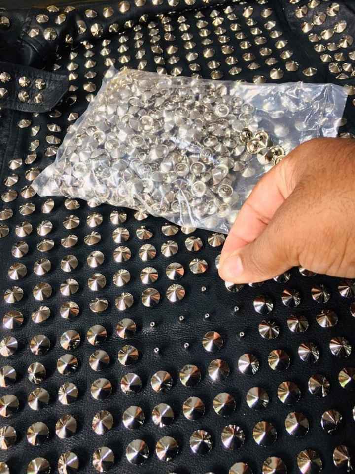 Professional Custom Logo Reversible Leather Quilted Breathable Fleece Lining Waterproof Hooded Steampunk Silver Studded Winter