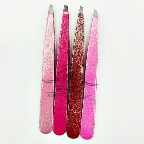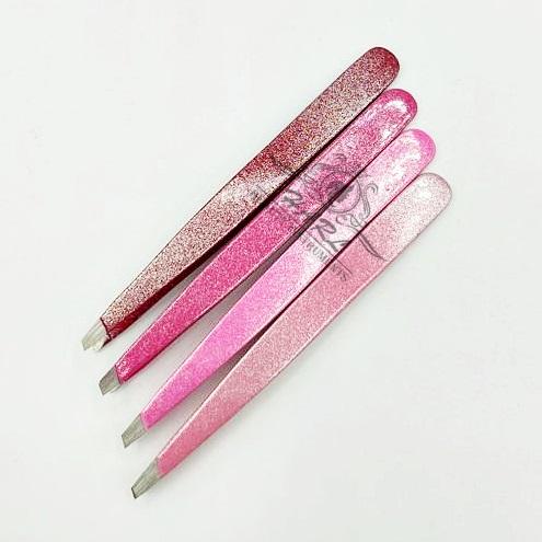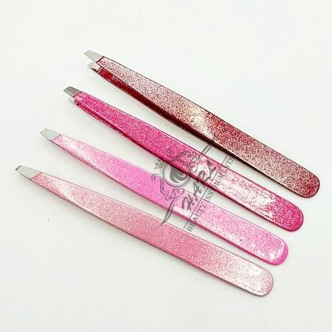 Professional Custom Made Stainless Steel Eyebrow Tweezers Set Good Slant Flat Clip Customized Packaging Multiple Pink Colors