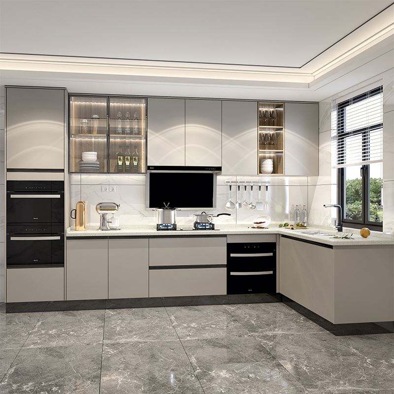 Professional Custom Modern Home Design Kitchen Cabinets Complete Set Smart Storage Solutions Glass Marble Hinge for Apartment
