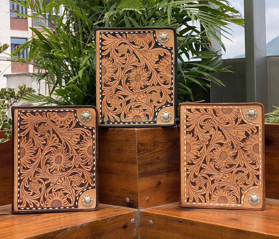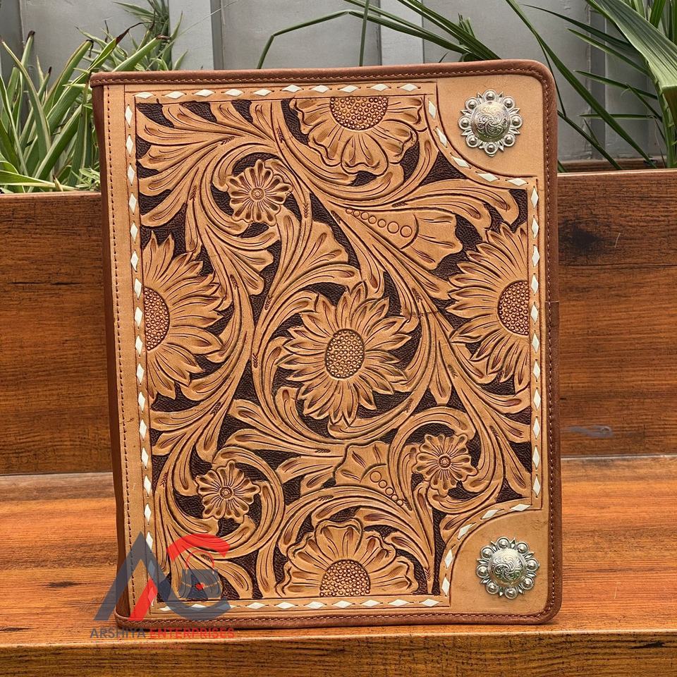 Genuine Hand Tooled Leather Business Portfolio File Folder