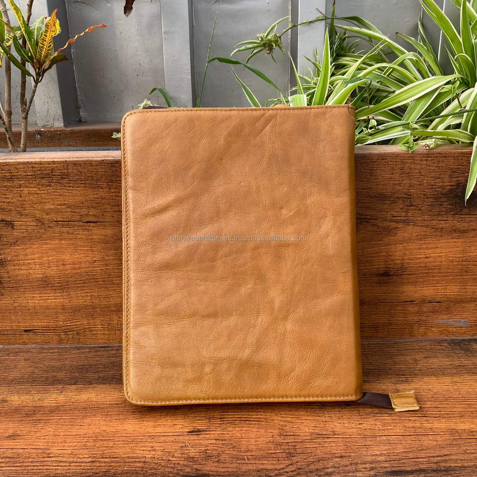 Professional Custom Top Quality Genuine Leather Business Portfolio Bag File Folder A4 Document Folder Binder With Card Holder