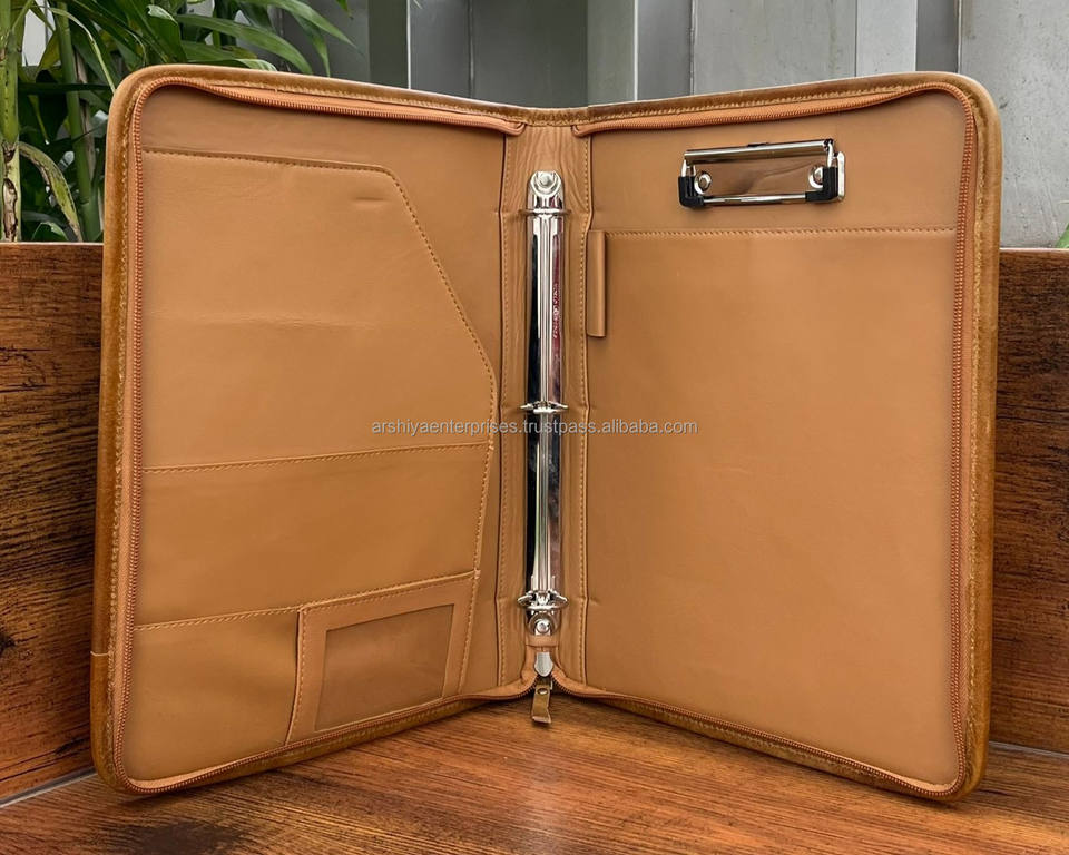 Professional Custom Top Quality Suede Hand Tooled Cowhide Leather Business Portfolio Bag File Folder A4 Document Folder Binders