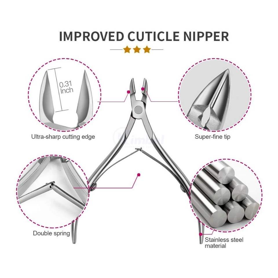 Professional Cuticle Nipper with Pusher Set Stainless Steel Manicure Pedicure Grooming Kit for Professional Salon Use