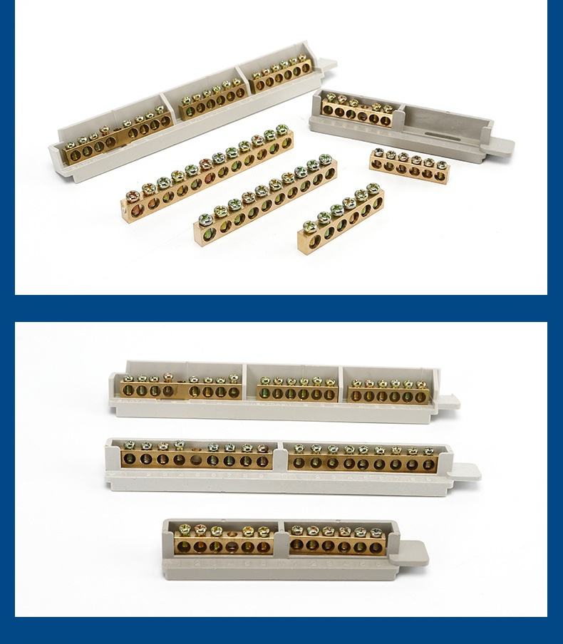 Professional DIN Rail Terminal Blocks M6 Tin Phosphorus Bronze Flexible Bus Bar Flame-retardant Insulation Screw Lock Wire IP20