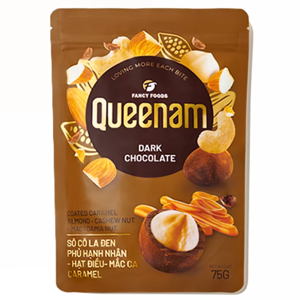 Professional Dragee Chocolate Solid Dark Coated Caramel Almond Cashew Macadamia Nuts Snacks OEM/ODM HALAL 75G Customized