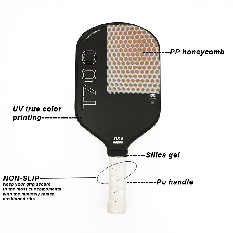 Professional Durable Carbon Fiber Pickleball Paddle Rough Surface Honeycomb Core Pickle Racket with Bag