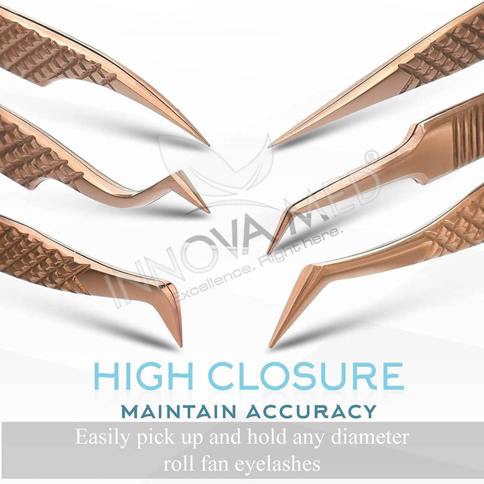 Professional Japanese Steel Eyelash Extension Tweezers Set Gold Finish Eco-Friendly Magnetic Tweezers Case Made Stainless Steel