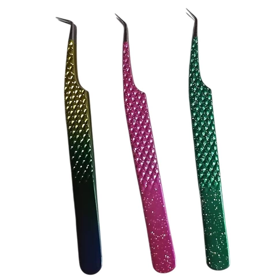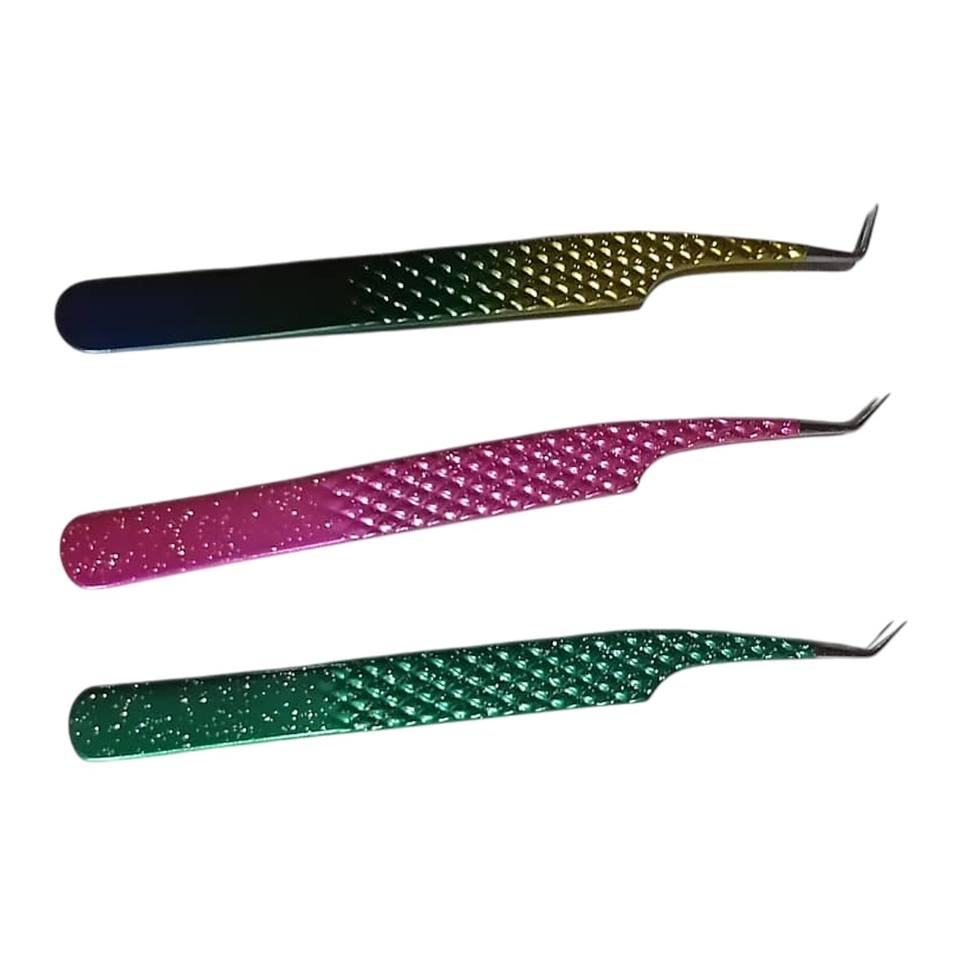 Professional Fiber Tip and Non Fiber Eyelash Tweezers Ergonomic Volume Fan Creation Straight Curved Beauty Instruments