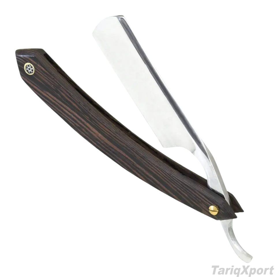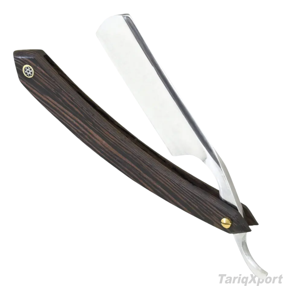 Professional Foldable Men's Straight Razor Wood Handle Black Stainless Steel Blade Disposable Single Blade Face Body Custom Logo