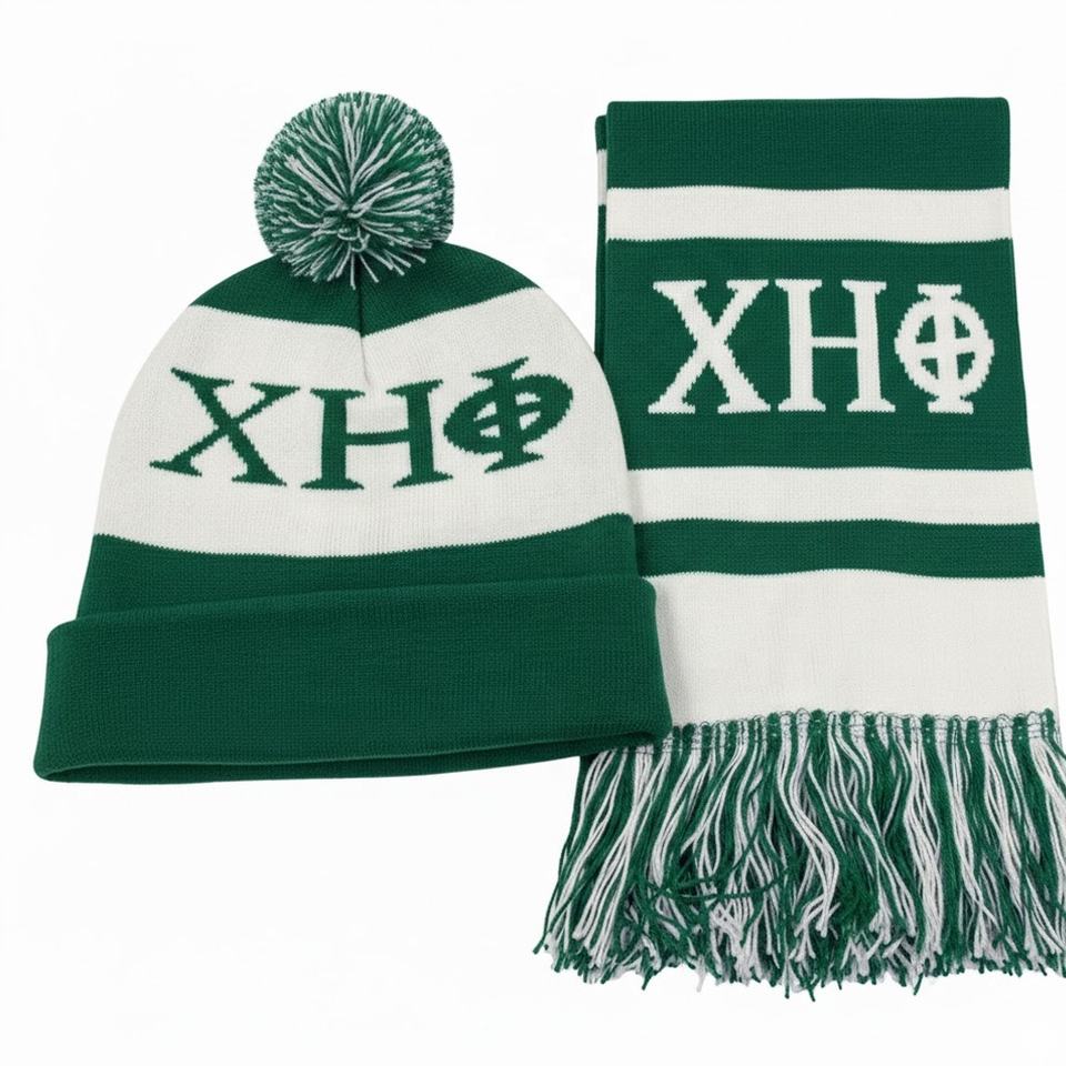 Professional Football Team Cartoon Pattern Customized Color 100% Acrylic Knitted Hat & Scarf Set Unisex Winter Warm