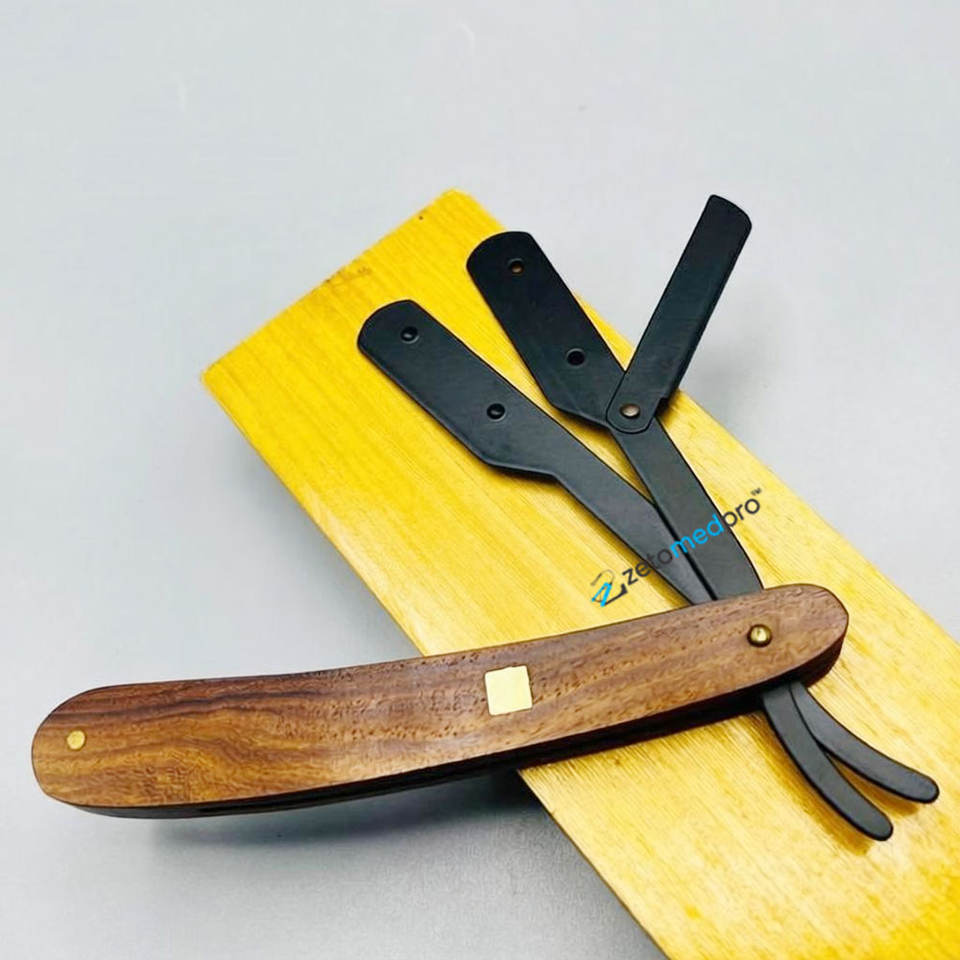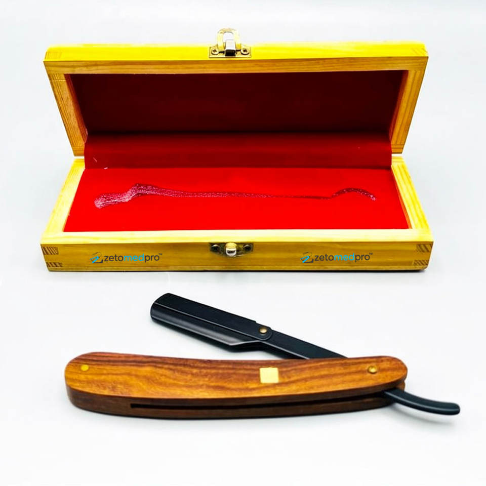 Professional Grooming Barber Razor Wooden Handle Salon Straight Equipment Stainless Steel Blade Safety Razor Packed Wooden Box