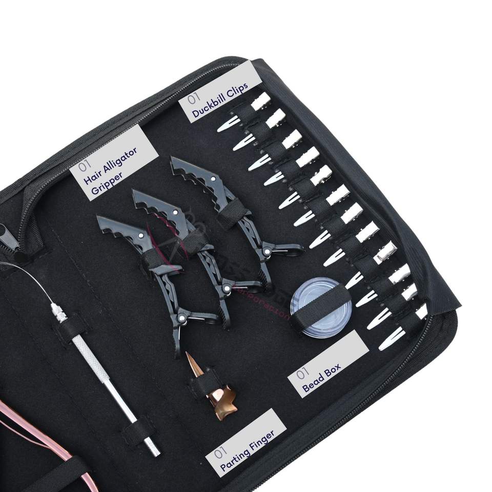 Professional Hair Extension Kit Pulling Loop Tape in Plier Microbeads Crimping Plier Bead Remover Duckbill Clips Bead Box