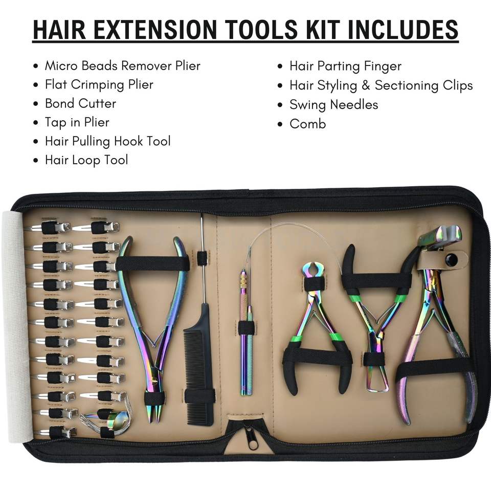 Professional Hair Extension Tools Kit with Flat Crimper Hair Extension pliers Bead Remover Keratin Cutter Parting Ring Comb Clip