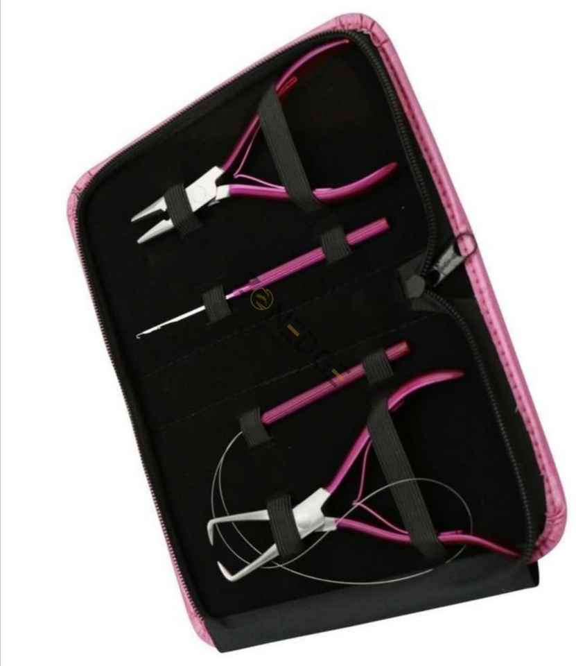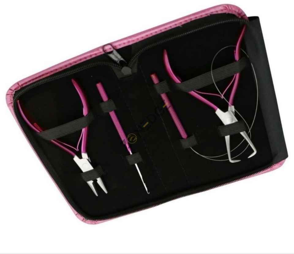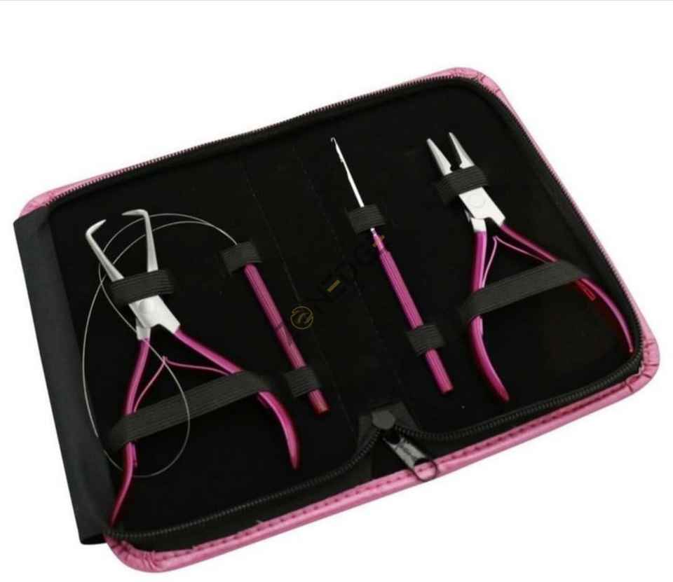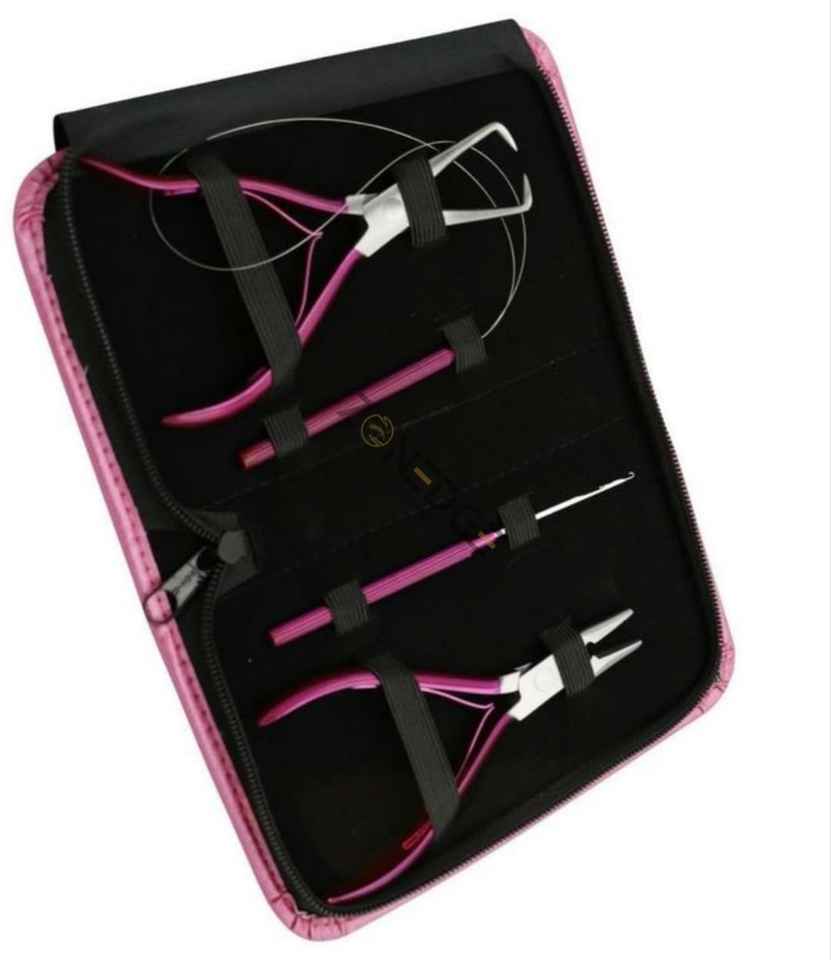 Professional Hair Extensions Tool Set 4-Pcs Micro Rings Tube Pulling Loop Needle Pin Wire Hot Purple Stainless Steel Metal