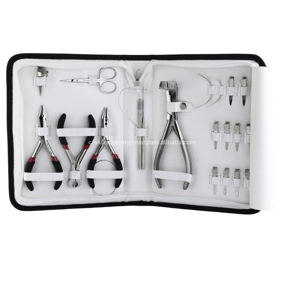 Professional Hair extension tools kit micro link opening pliers sectioning finger ring alligator clips curved needle scissors