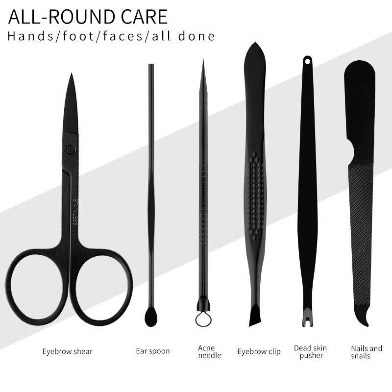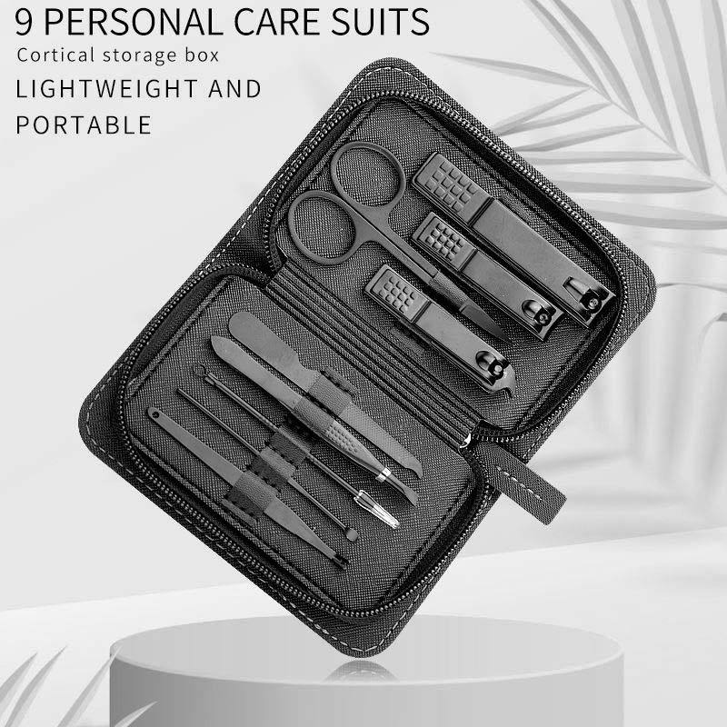Professional High Quality Black Stainless Steel Manicure Pedicure Set 9 Pcs Nail Clipper Grooming Kit for Personal Use