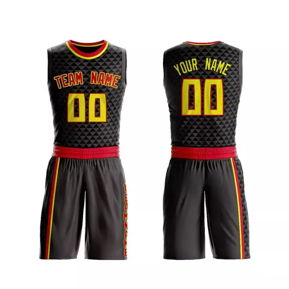 Custom Sublimated Basketball Jersey Set Black Yellow Red Team Name 00 Moisture Wicking Polyester Adult Unisex Athletic Fit