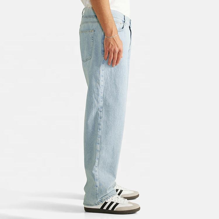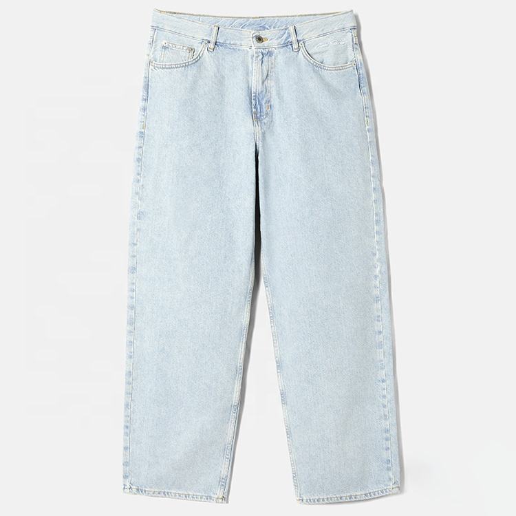 Professional Hot Selling Loose Fit 100% Cotton Design Jeans for Men Mid Waist 5 Pocket Denim Pants with Embroidered Logo