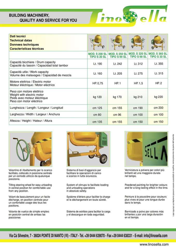 Professional Italy-made Lino Sella Silent Concrete Cement Mixer Mod. S250SL-S99SL Manual New Easy Sale Competitive Price for