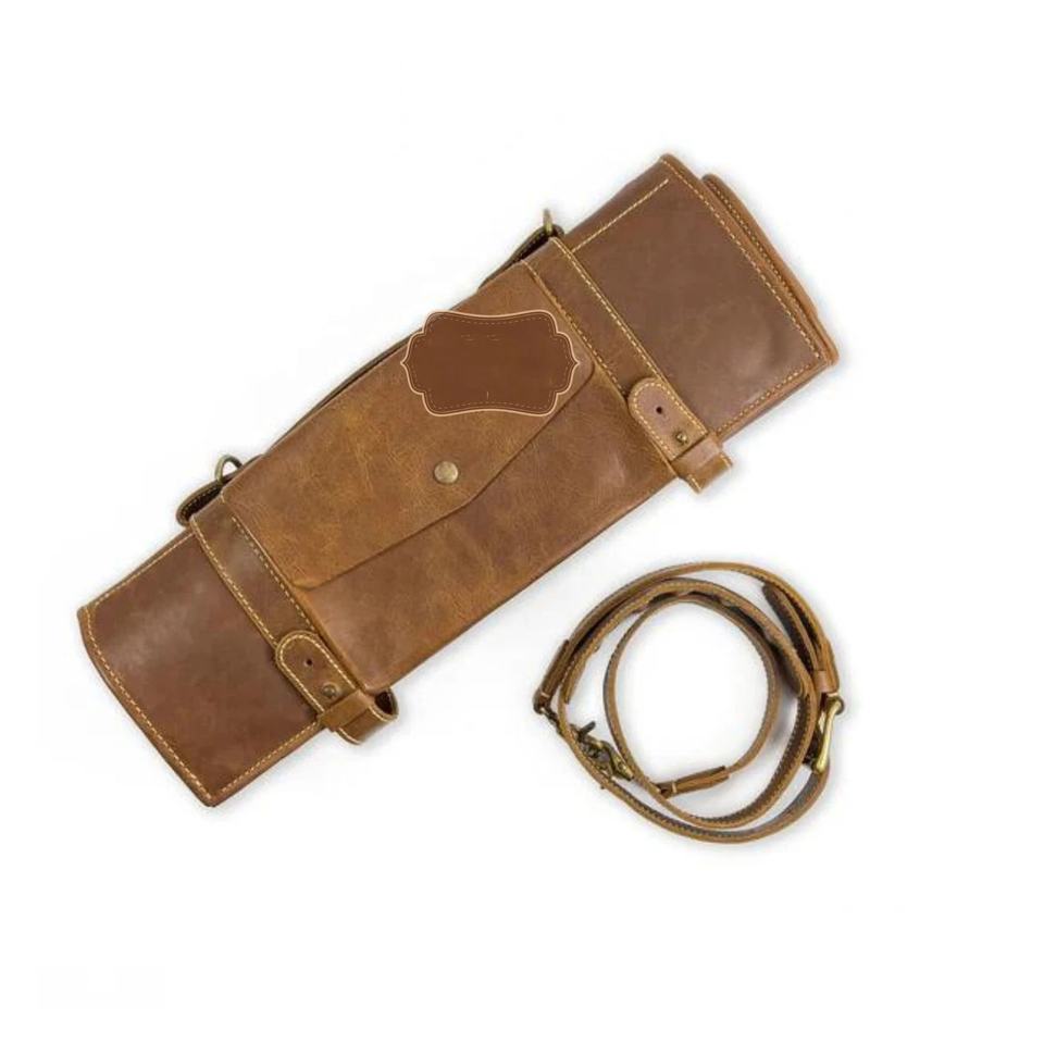 Professional Kitchen Tool Bag Cutlery Knife Case Chef Leather Factory Custom Chef Tool Carry Leather Knife Roll Bag LKR-0035