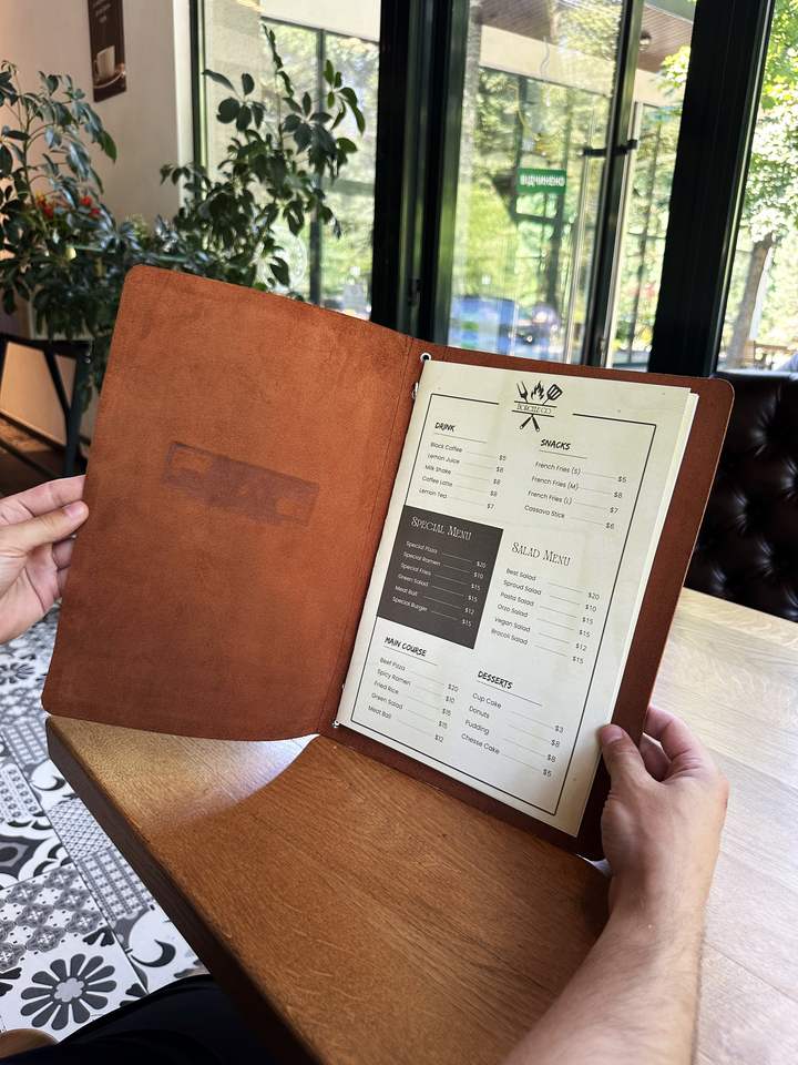 Professional Luxury Leather Menu Holder with Foldable Design Comfortable Grip & Protection for Restaurants Cafes Hotels-LMC-0178