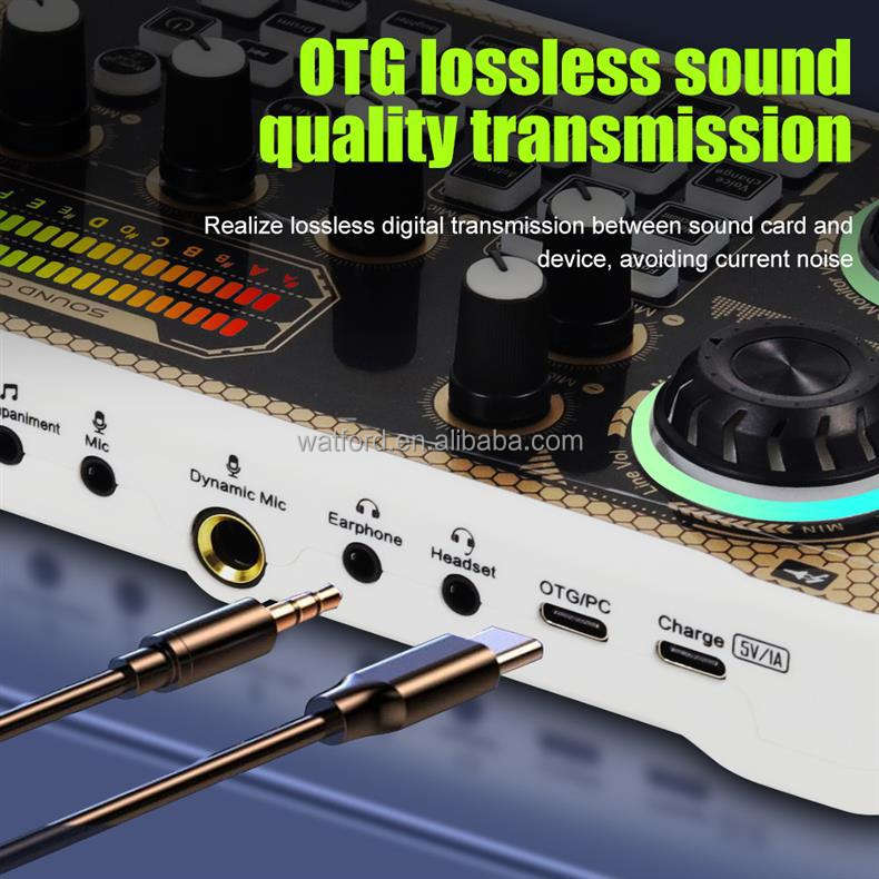 Condenser Microphone, Light-weight, Noise Cancelling, Portable, With LED Lights, With RGB lighting, With Sound Card