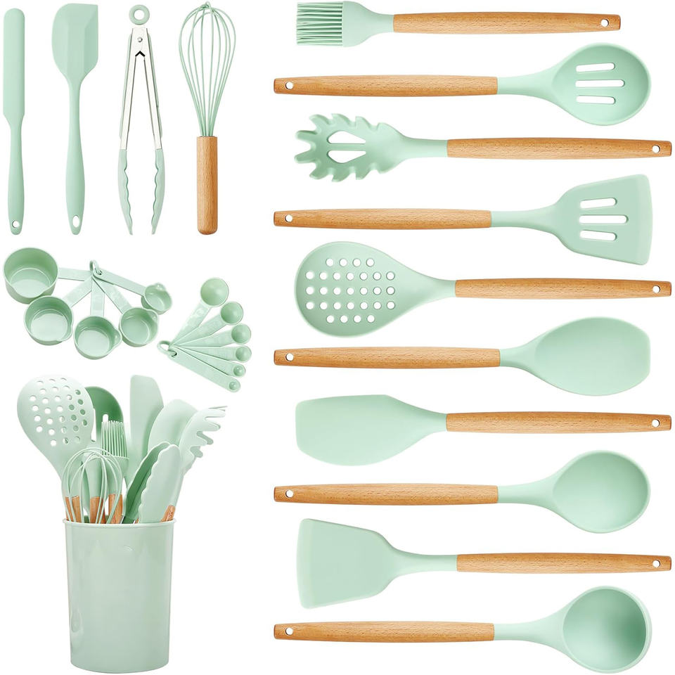 Product Name:Natural Wood Cooking Tool Silicone Kitchen Utensil Set