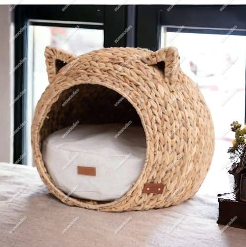Professional Manufacturer Oval Shaped Water Hyacinth Pet House for CatCrafted Cushioned Crib Cozy Interior for Pet