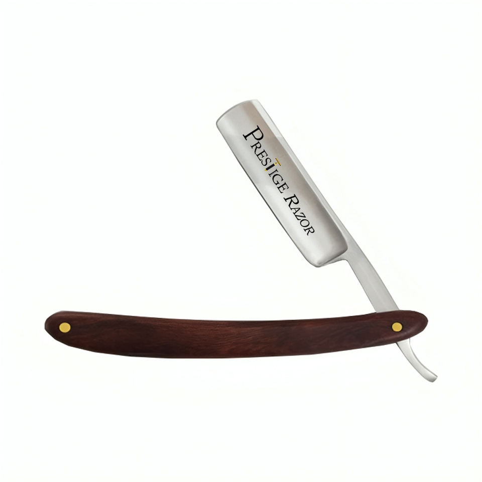 Professional Men's Disposable Single Edge Safety Razor Brown Wooden Handle Stainless Steel Brush Salon-Quality Straight Edge