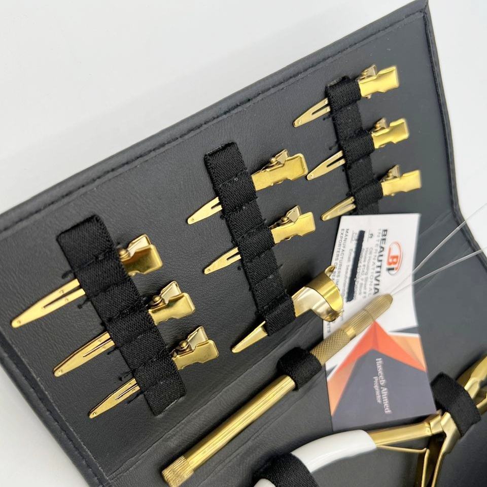 Professional Micro Plier Gold Plated Stainless Steel Hair Extension Tools Plier Set with Hair Section Clips ,Finger and Loop