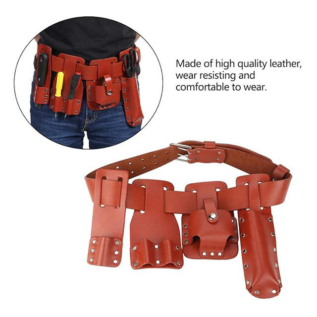 Professional Multi Functional Pure Cowhide Leather Electrician Tool Belt Case Set Combo Pouch Work Organizer Leather Tool Belt