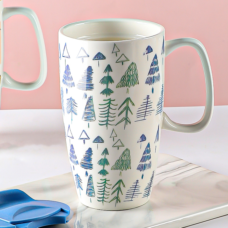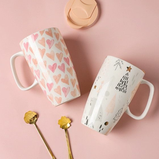 Professional New Large Capacity Customizable Coffee Porcelain Mug Heart Tree Design Dishwasher Microwave Safe Reusable Food Safe