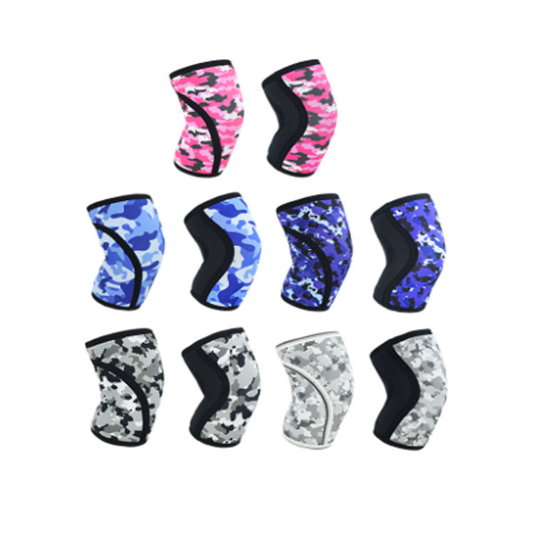 Professional Nylon Gym Knee Sleeve 30cm Long with Printed Pattern Design 7mm Neoprene