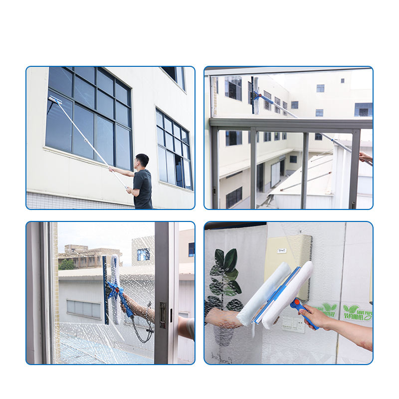 Professional Outside Window Washing Squeegee Kit 2 in 1 Extendable Plastic Head Rotate Swivel Mop and Window Squeegee Cleaner